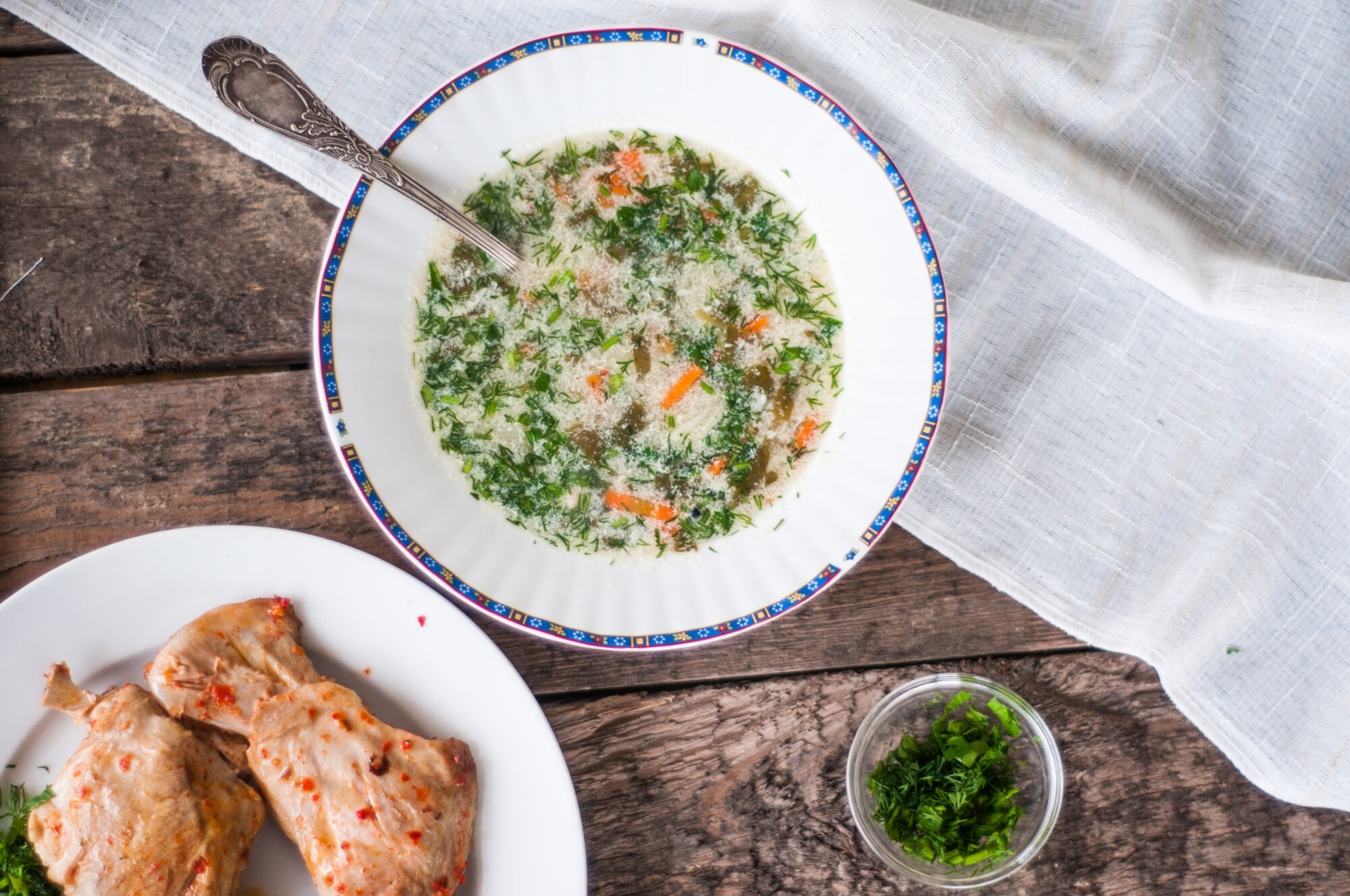 Whisk one egg with sour cream and pour into the soup. Sprinkle with finely minced dill, sorrel, parsley and cover the pan with a lid. Simmer for another 5-7 minutes.